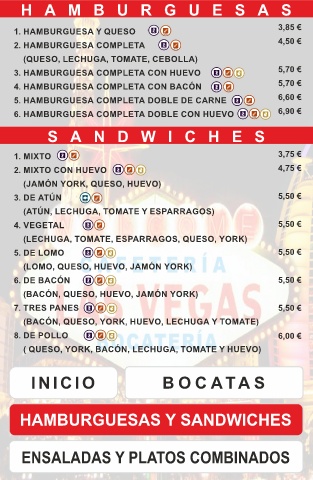 HAMBURGUESAS Y SANDWICHES